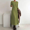 De lange, identieke pasvorm geeft je een mysterieuze uitstraling zonder moeite. De jurk beweegt soepel met je mee, waardoor je er niet alleen mooi uitziet, maar je je ook licht en vrij voelt terwijl je loopt. Ideaal voor zowel overdag als 's avonds — een jurk die je steeds opnieuw wilt dragen.